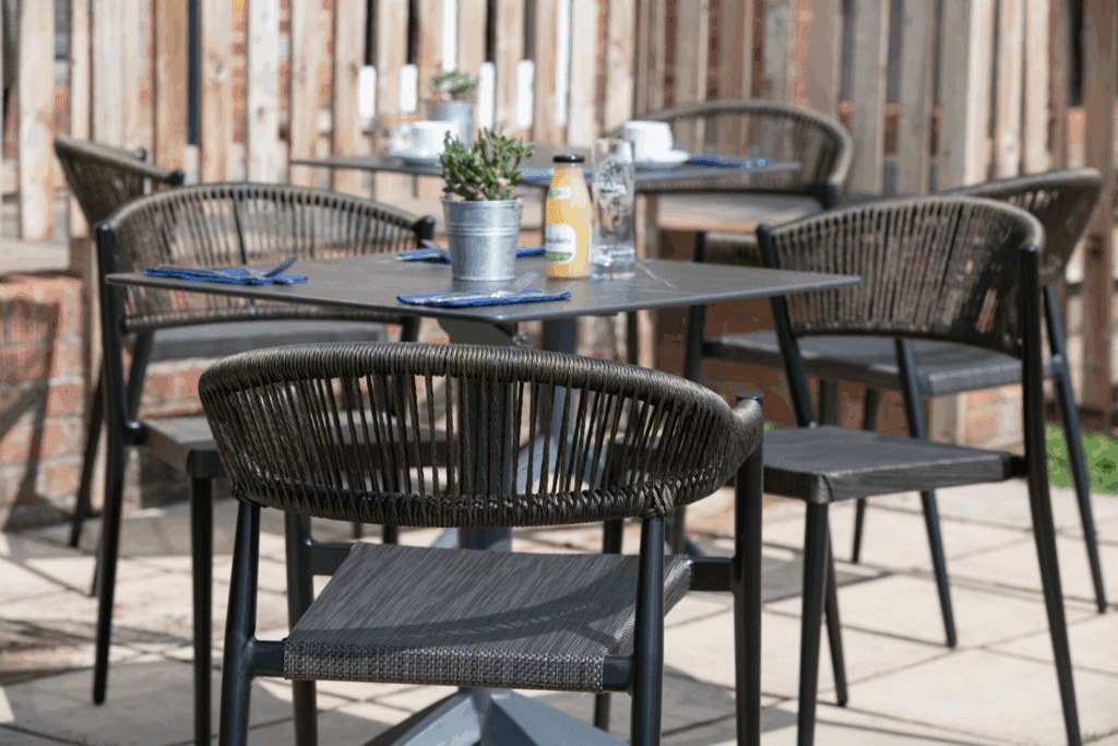 Why it works: This lightweight, durable seating set looks premium and matches beautifully with greenery and lights. Perfect for morning tea or evening relaxation.