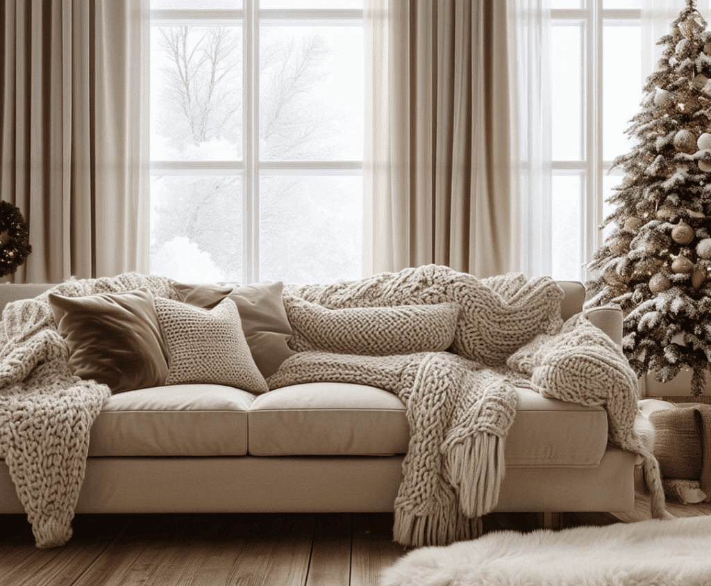Throw a wool throw over your sofa, layer pillows in blended fabrics, or place a lace table runner on your dining table.