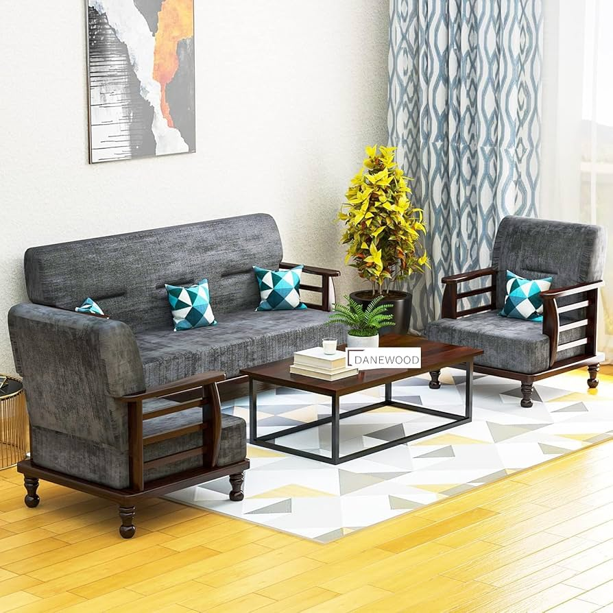 3. DaneWood Wooden 5 Seater Sofa Set – Simple Retro Appeal