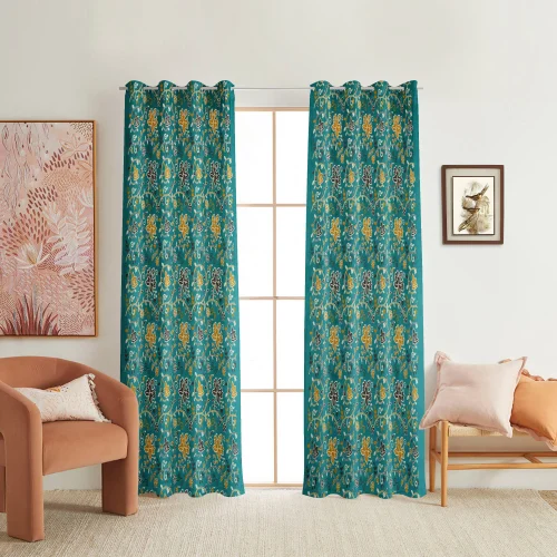 For texture and color without dominating the space, these turquoise embroidered curtains provide the ideal middle ground. Made on a sheer foundation, the floral embroidery and checkered pattern add sophistication with a quiet splash of color.