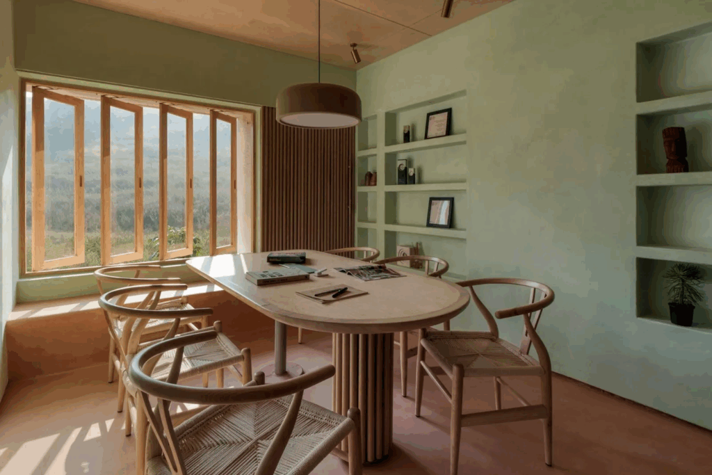 In the heart of Mumbai’s chaos, this bedroom feels like a retreat into the woods. Designed by Architecture BRIO for a young wildlife photographer, it balances aesthetic sensitivity with a love for nature. Here, green isn’t just decorative—it’s deeply personal.