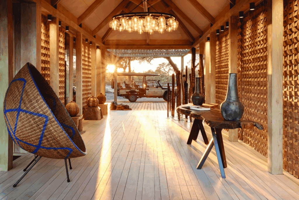 As evening falls, the soft light of a custom chandelier turns the room into something near-magical.