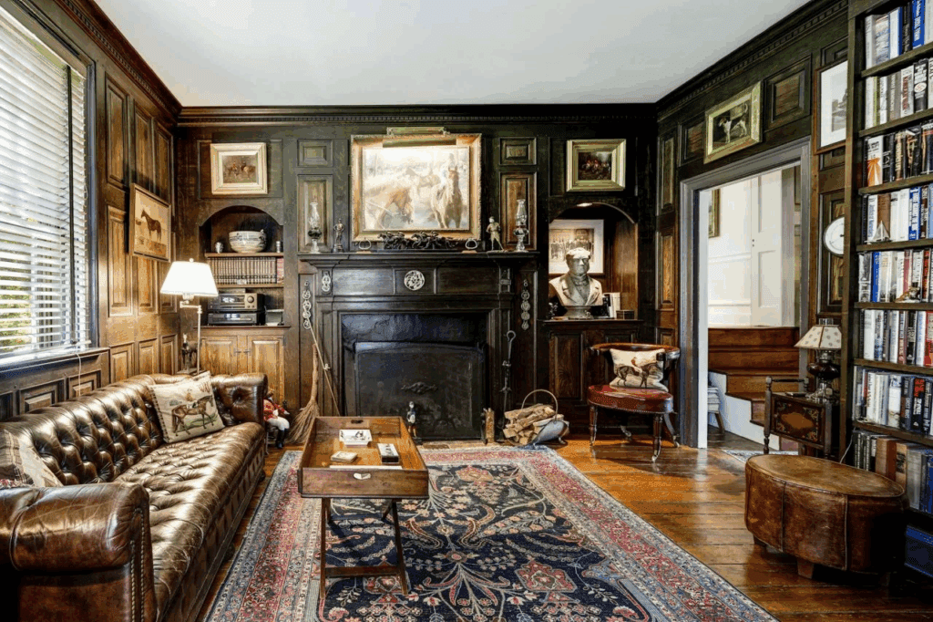 This classic 4,000-square-foot house was lovingly restored in 1993 by architect Kirk Hillman. It boasts a wood-beamed ceiling, a warm stone fireplace, and a chef’s kitchen that welcomes family gatherings. But the true soul of the master bedroom is its antique four-poster bed, where Indian prints, ethnic artwork, and a warm, welcoming aura surround.