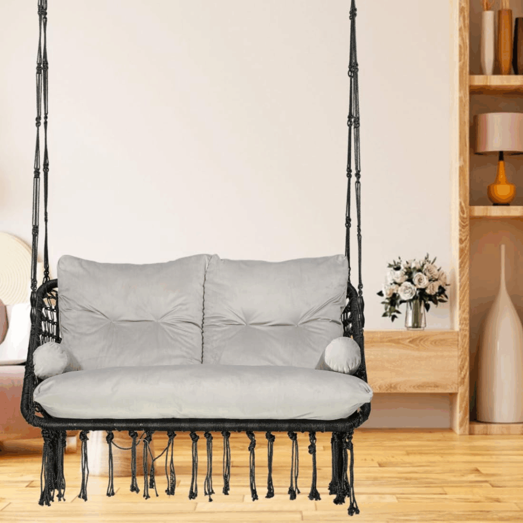 Patiofy Premium Black & Grey Double Seater Hammock Swing Chair With Cushion