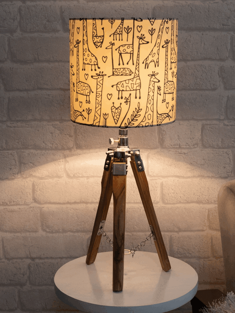 Give your room some personality with this colorful table lamp, boasting a printed shade fabric and solid wooden tripod base. It’s an easy no-assembly lamp with an adjustable cord and bulb feature. Perfect for work desks or bedroom nightstands.