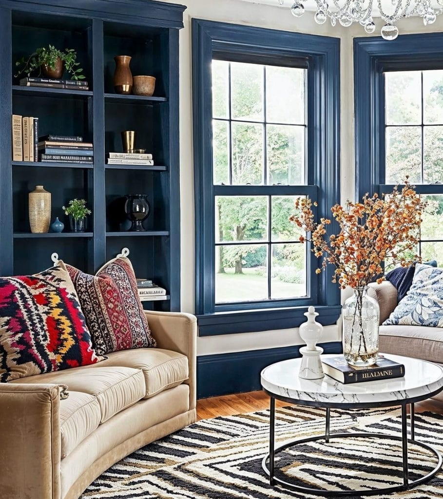 2. Paint a Blue Feature Wall for a Bold Focal Point that Grounds the Space