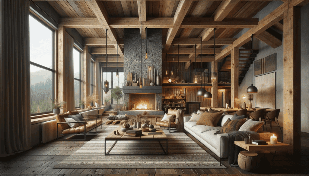 Chunky wood tables, solid stone floors, and oversized leather sofas are cornerstones of rustic design. These substantial pieces bring weight and warmth to the space.