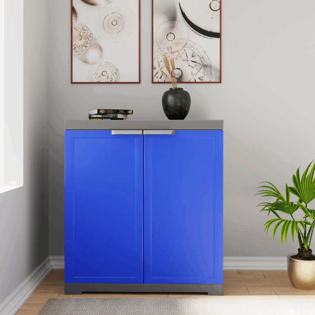 A weather-resistant, long-lasting cabinet with locking doors. Perfect for use in the kitchen or as a multipurpose. Lightweight, simple to clean, and small enough for small homes.
